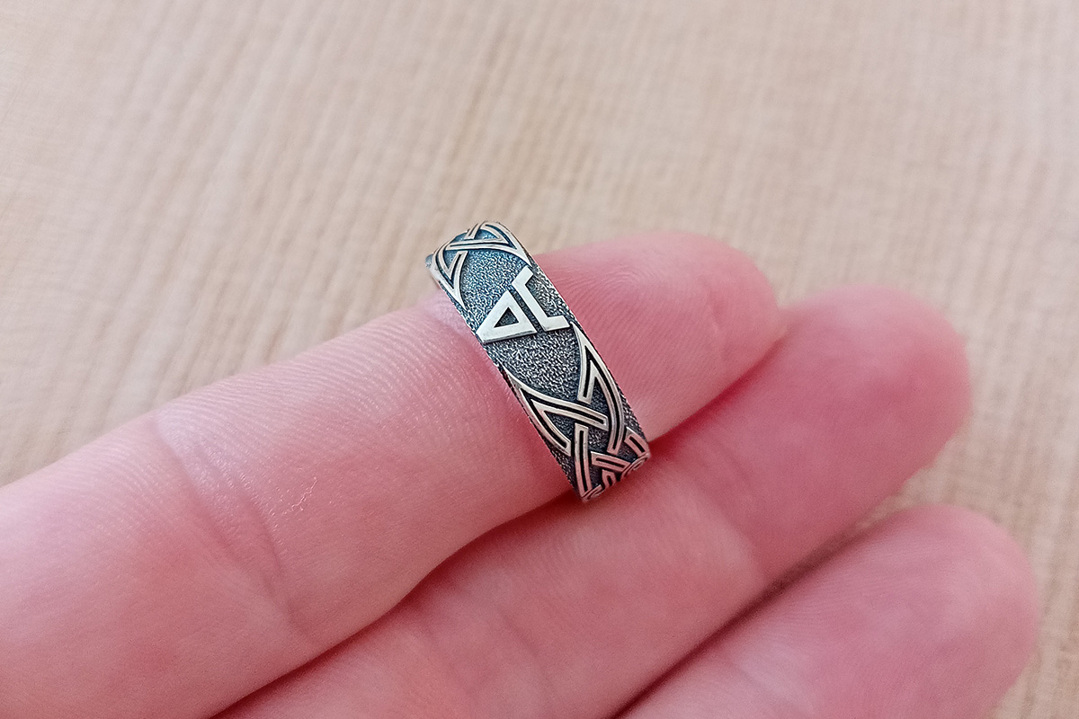 Обережное кольцо из золота со Славянскими символами